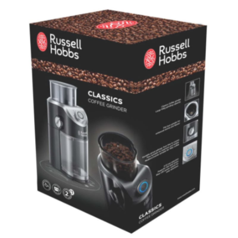 Високоякісна сучасна кавомолка Russell Hobbs 23120-56 Coffee Grinder підійде власникам кавоварок без функції помелу та тим, хто полюбляє заварювати каву в турці. Її привабливий дизайн чудово поєднується з іншою кухонною технікою, а компактний розмір дозволяє розмістити прилад на стільниці або прибрати в кухонну шафку.