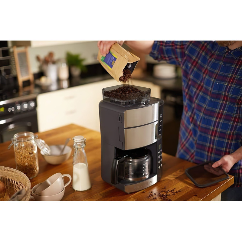 Кавоварка Russell Hobbs крапельна Grind and Brew, 1.25л, мелена, LED-дисплей, чорно-метал