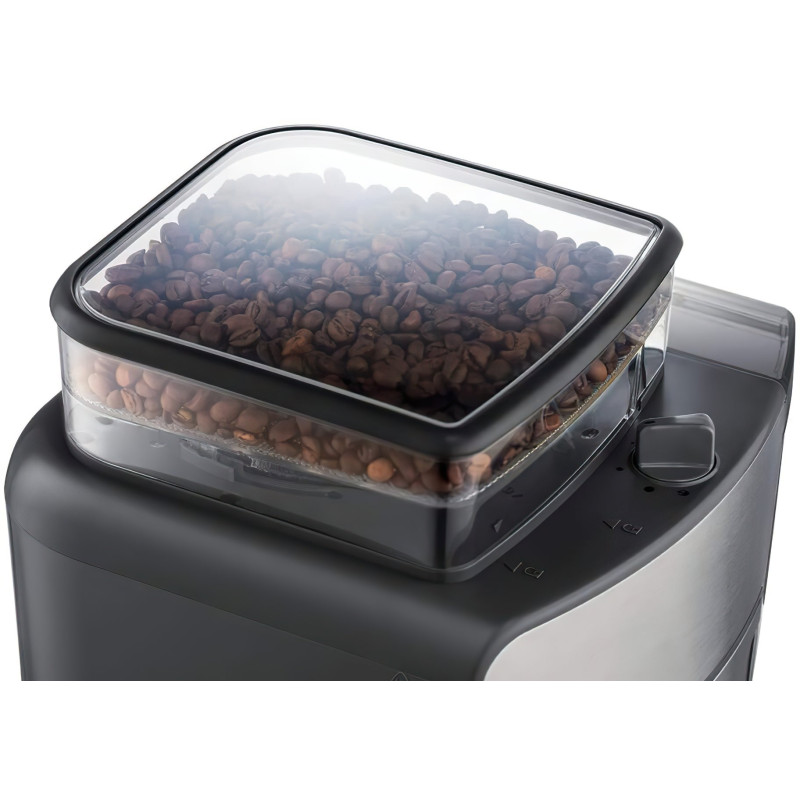 Russell Hobbs Grind and Brew (25610-56) — крапельна кавоварка з вбудованою кавомолкою для зерен або меленої кави, резервуаром 1.25 л і потужністю 1000 Вт, що готує до 12 чашок. Оснащена LED-дисплеєм, функцією паузи та підігріву. Технологія WhirlTech покращує смак кави. Чорно-металевий дизайн, вага 4.3 кг, гарантія 24 місяці — ідеальна для свіжозмеленої кави вдома чи в офісі.