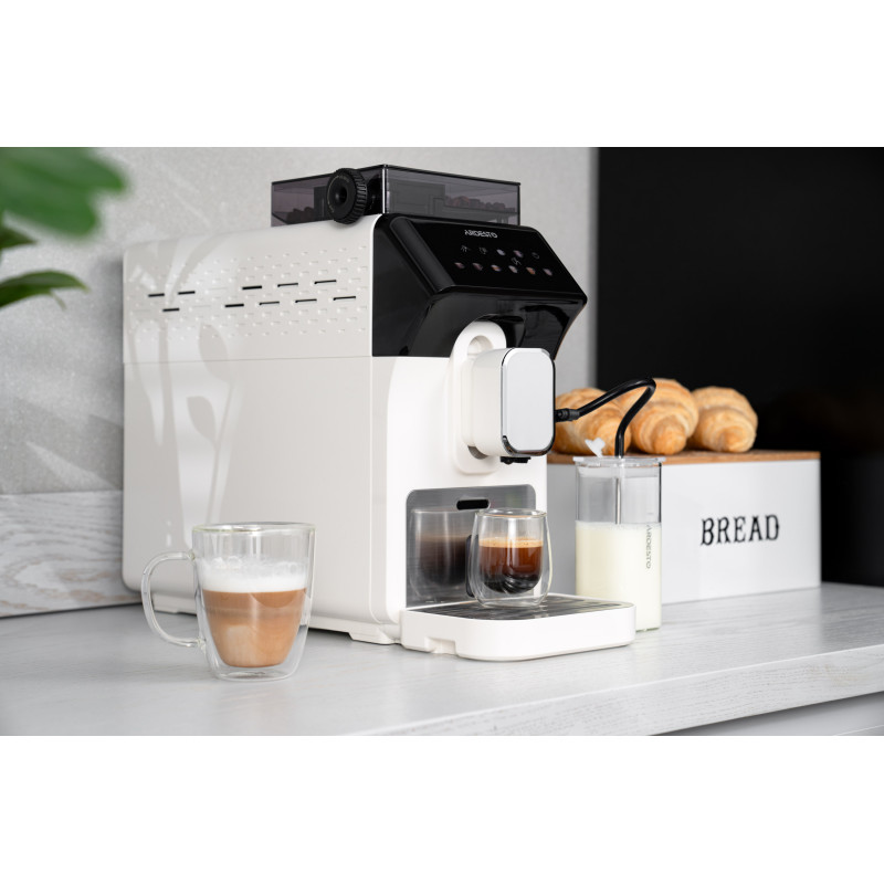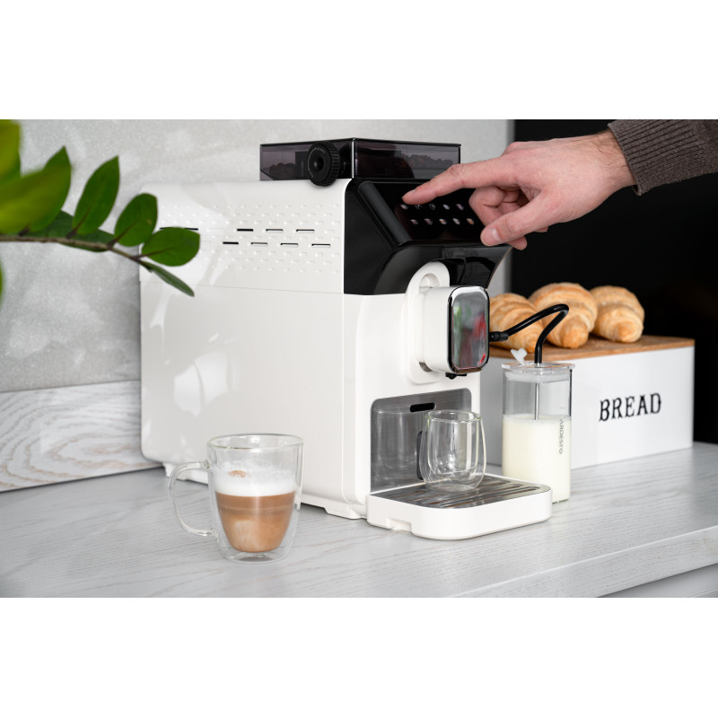 Перетворіть приготування кави на справжнє мистецтво з повністю автоматичною кавомашиною ARDESTO FCM-FA900W. Її стильний біло-чорний дизайн вдало поєднує сучасність і елегантність, гармонійно доповнюючи інтер’єр кухні чи офісу. Завдяки розширеному функціоналу ця кавомашина стане незамінним помічником для створення улюблених напоїв.