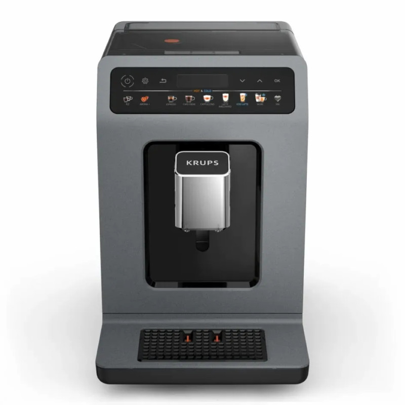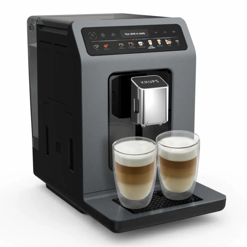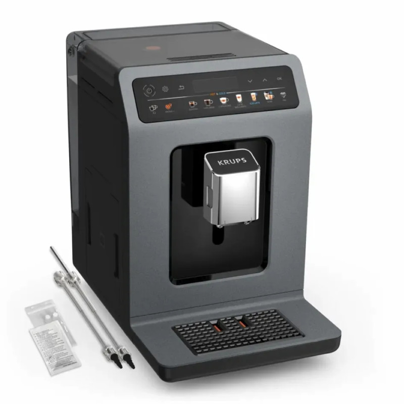 Krups Evidence Hot & Cold - автоматична еспресо-машина, яка готує смачні гарячі та холодні напої з насиченим ароматом та вишуканим заварюванням. Відкрити для себе ефект бариста вдома легко завдяки 18 рецептам та стильному зручному інтерфейсі. Технологія Cold Brew Aroma (холодне заварювання) забезпечує ідеальну екстракцію для бездоганних холодних напоїв.