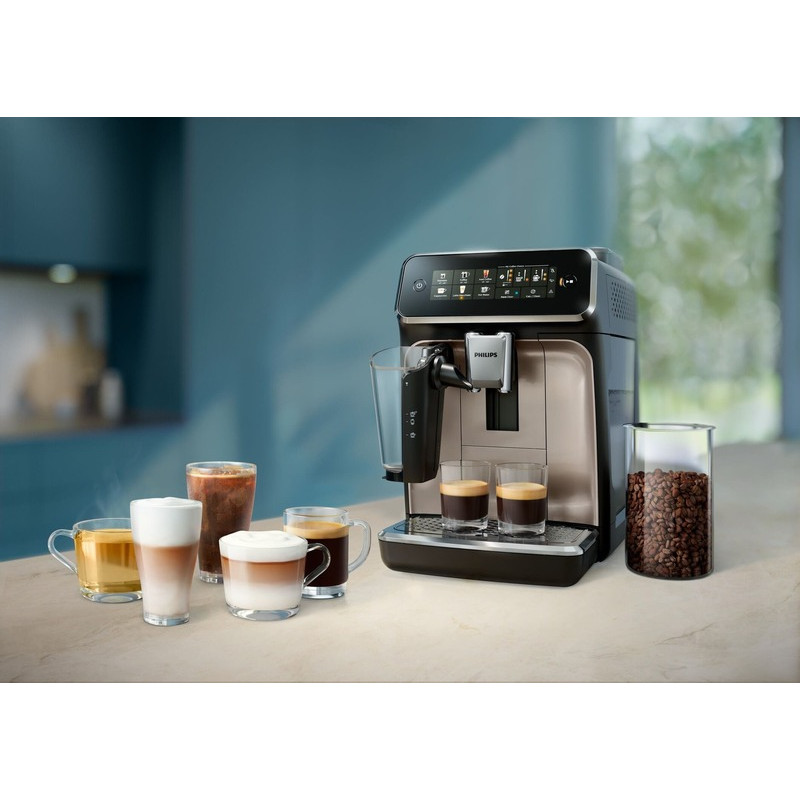 Повністю автоматична еспресо кавомашина Philips серії 3300. Один дотик, і ви насолоджуєтеся шістьма гарячими та освіжаючими напоями з ідеальною пінкою, ароматом і температурою. Система LatteGo автоматично готує кавові напої із шовковисто-м’якою молочною пінкою, її легко налаштувати та можна очистити всього за 10 секунд