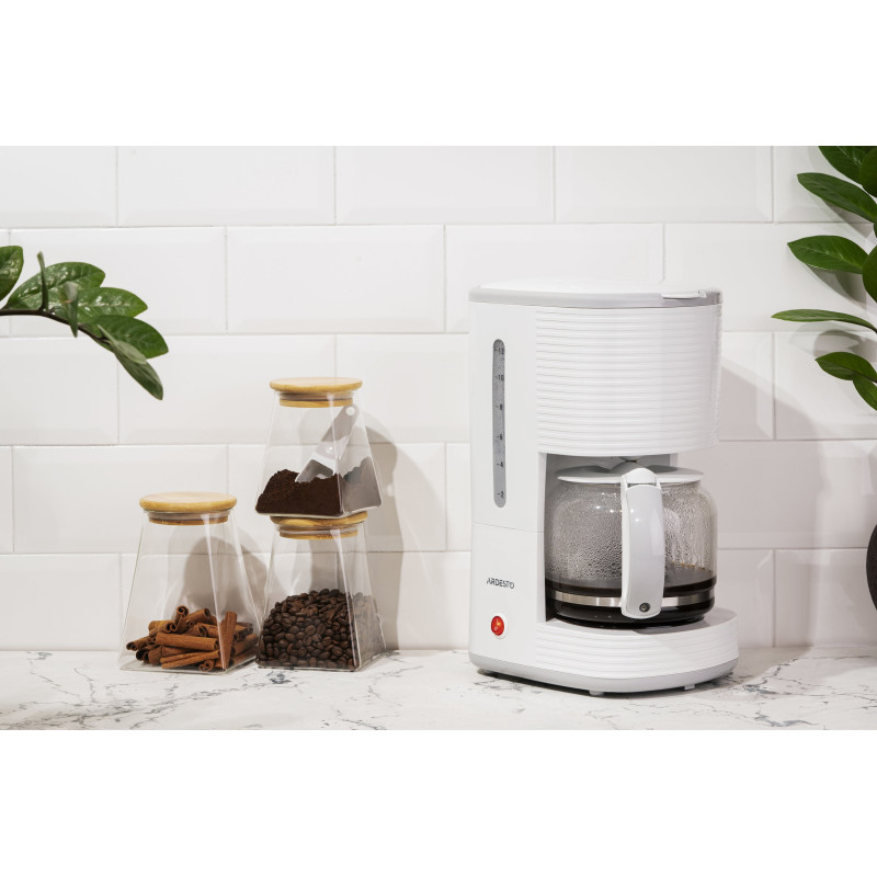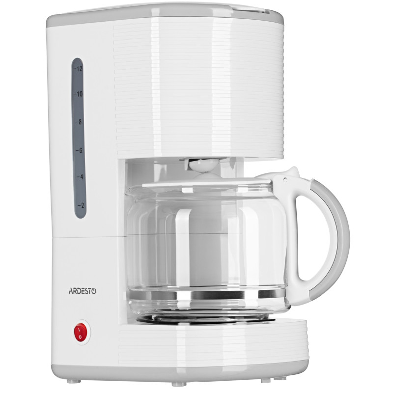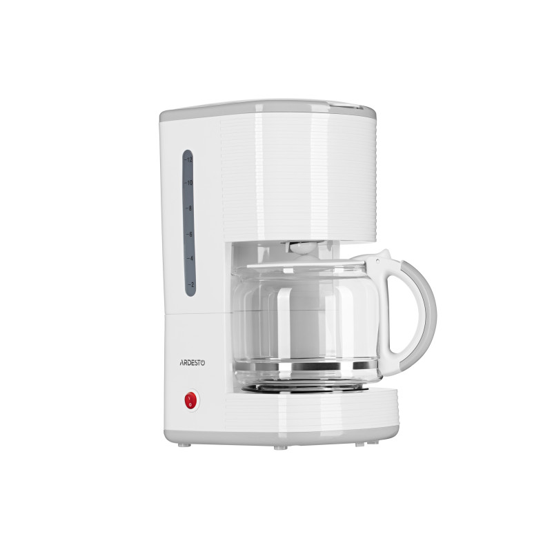 Крапельна кавоварка Ardesto FCM-D17WG білого кольору. Потужність кавоварки – 1 080 Вт. Приготування 10-14 філіжанок кави за один раз. Скляний кавник ємністю 1,5 л оснащено теплоізолювальним руків’ям. Пластина для підігріву кавника є протипригарною. Кавоварка Ardesto FCM-D17WG має індикатор живлення, оснащена системою протикапля, індикатором рівня води та нековзкою основою.
