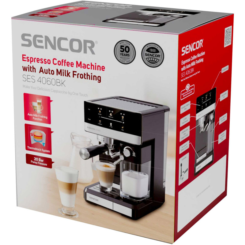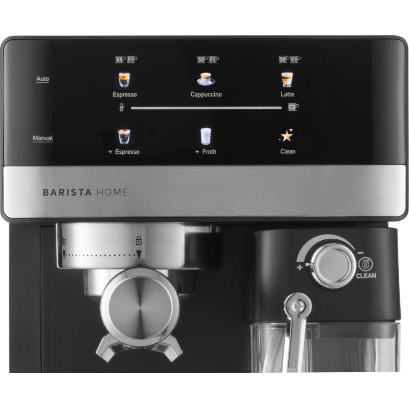 Насолоджуйтесь кавою якості бариста у себе вдома із цією автоматичною кавоваркою преміум-класу. Вона оснащена потужним насосом з тиском 20 бар і вдосконаленою системою нагрівання термоблока, яка забезпечує насичене й ароматне еспресо при кожному приготуванні. Вбудована автоматична система спінювання молока дозволяє створювати вершкове капучино, гладке лате або просто спінене молоко з регульованими параметрами піни - і все це одним натисканням кнопки. Знімний резервуар для молока об'ємом 500 мл і знімний блок спінювання полегшують чищення, а спеціальна програма очищення забезпечує постійну гігієну. Цифровий дисплей з інтуїтивно зрозумілими кольоровими піктограмами полегшує керування, а такі функції, як попереднє спінювання, підігрів чашок й автоматичне вимкнення, підвищують зручність використання. У комплект кавоварки входять фільтри з нержавіючої сталі на одну або дві чашки, тримач фільтра та тампер з ложечкою - усе, що потрібно, щоб насолоджуватися кавою в стилі кафе, не виходячи з кухні.