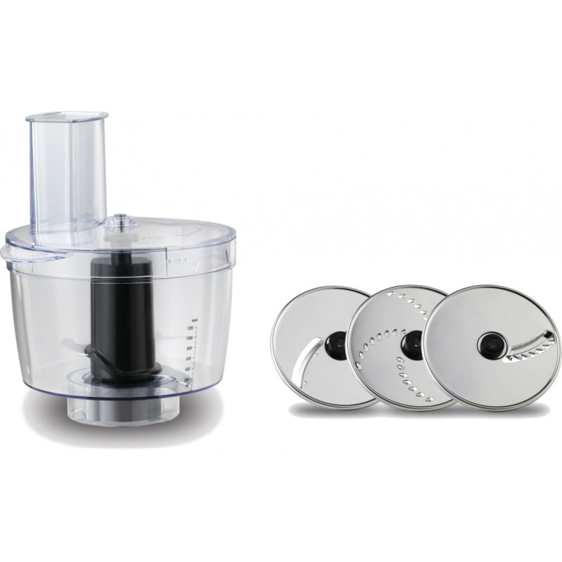 Кухонна машина Tefal Masterchef Grande QB813D38 працює на потужності 1500 Вт і оснащена металевою чашею об’ємом 6,7 л. Комплект включає 9 насадок, серед яких м’ясорубка з насадкою для ковбас, блендер зі скляною чашею 1,4 л, вінчик, гаки для тіста та мультирізка з трьома дисками. Корпус і основна чаша виконані з металу, що забезпечує стійкість до навантажень. Електронне керування пропонує 8 швидкостей для точного підбору режиму.