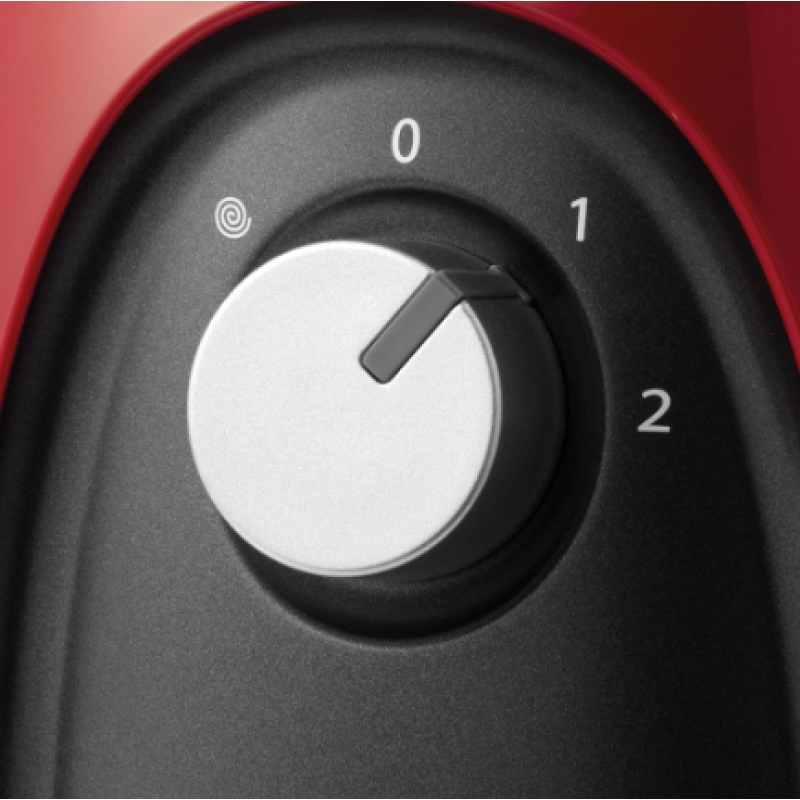 Глибокий червоний корпус, прозорі насадки та стильні сірі акценти дають цьому кухонному комбайну повне право зайняти почесне місце на вашій кухонній стільниці.