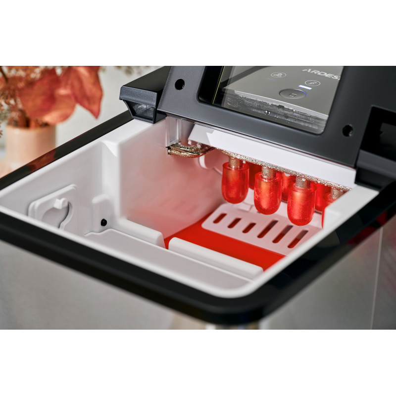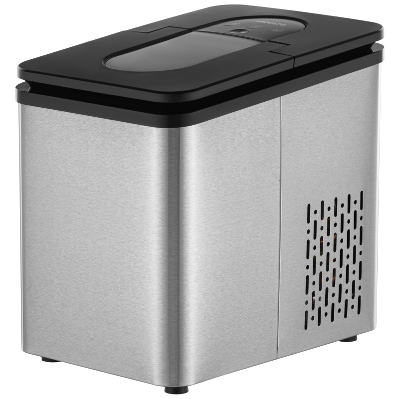 Портативний побутовий льодогенератор для швидкого приготування харчового льоду. Пристрій виконаний у стильному і практичному корпусі із нержавіючої сталі, оснащений сенсорною панеллю керування, індикаторами роботи та віконцем для візуального контролю кількості льоду. Клас захисту – І. Максимальна продуктивність ARDESTO IM-A1200SS – 12 кг льоду на добу. Контейнер для льоду – 0,6 кг, цикл приготування льоду триває близько 9 хв. Об’єм резервуара – 1,8 л.