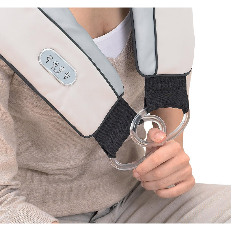 Болі в шиї та верхній частині спини можуть завдавати маси незручностей, особливо якщо ви страждаєте на хронічні захворювання. Якщо пошук масажиста не завжди практичний і доступний, то з Beurer MG150 з'явилася можливість щодня робити масаж шиї, не благаючи друзів чи близьких допомогти. Beurer MG150 формою нагадує традиційну подушку для шиї і має підковоподібну форму, яка щільно прилягає до шиї. Заспокійливий масаж плечей та шиї досягається за допомогою глибокого постукування, яке знімає напругу у глибоких шарах м'язів.