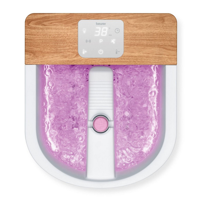 Масажна ванночка для ніг з яскравою різнокольоровою підсвіткою води. Оснащена вібраційним та бульбашковим масажем. Має вісім ступенів нагріву води. Забезпечує розслаблення та приємні відчуття вашим ніжкам. В комплекті насадки для педикюру.