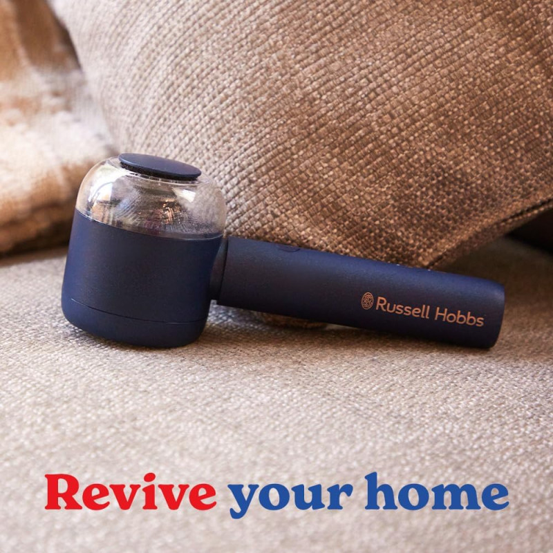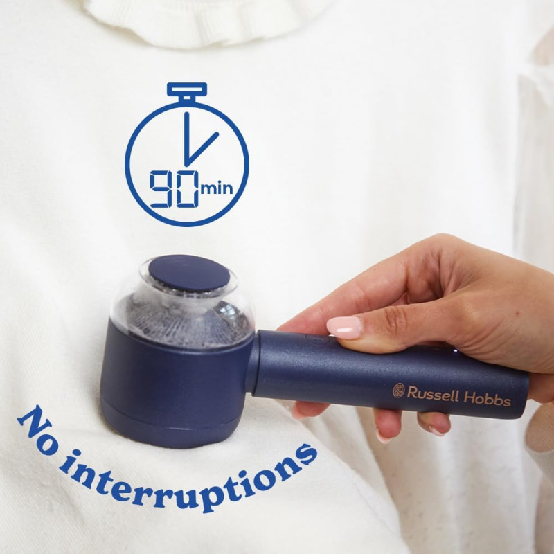 Russell Hobbs 27660-56 — портативна машинка для видалення катишків із великою площею лез для швидкого догляду за одягом! 90 хвилин роботи на одному заряді через USB, синій колір і ергономічний дизайн — зручний помічник для свіжого вигляду речей будь-де!