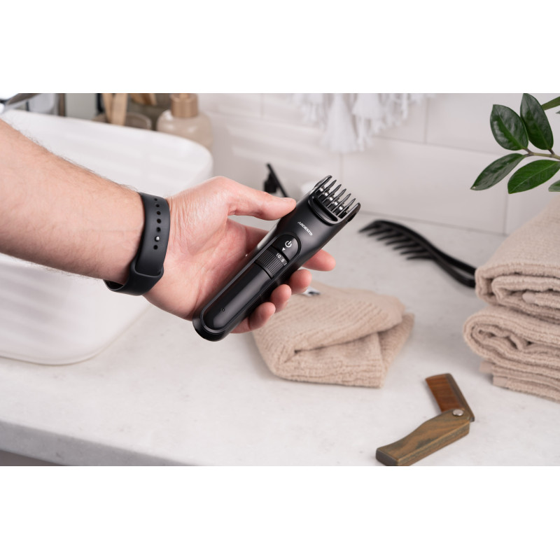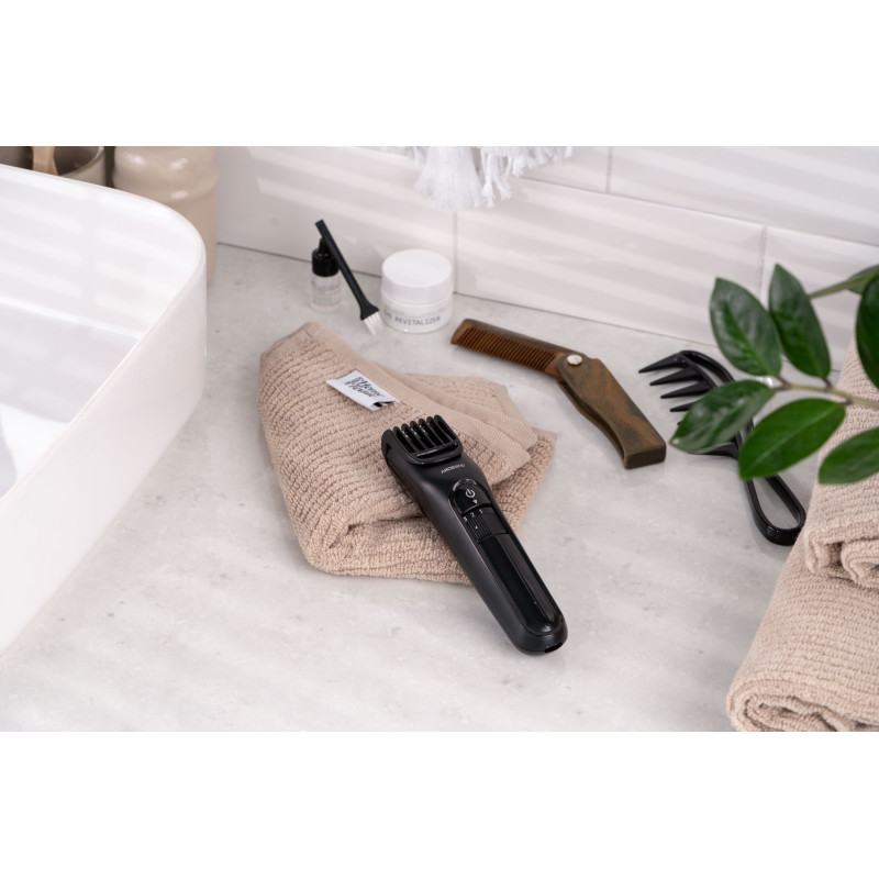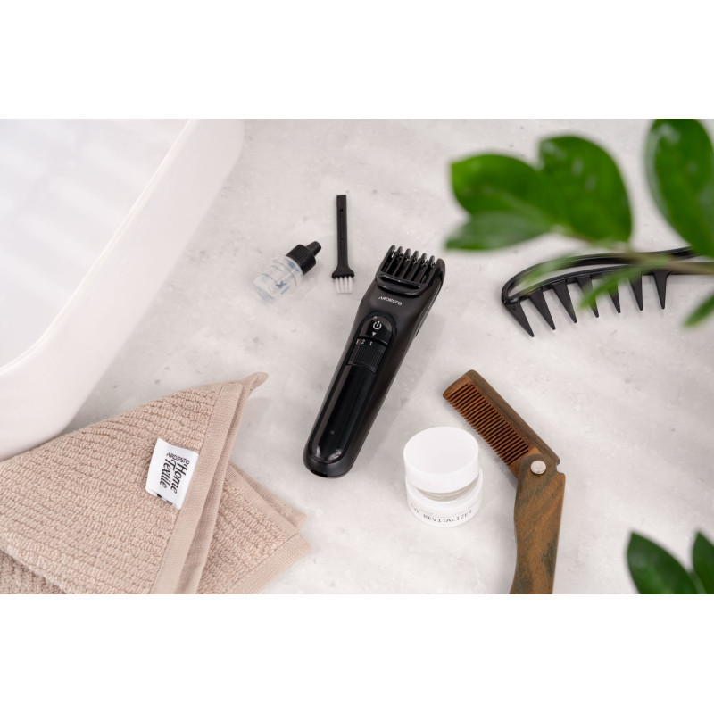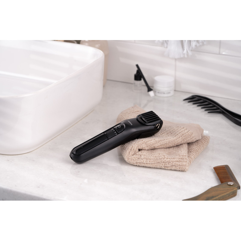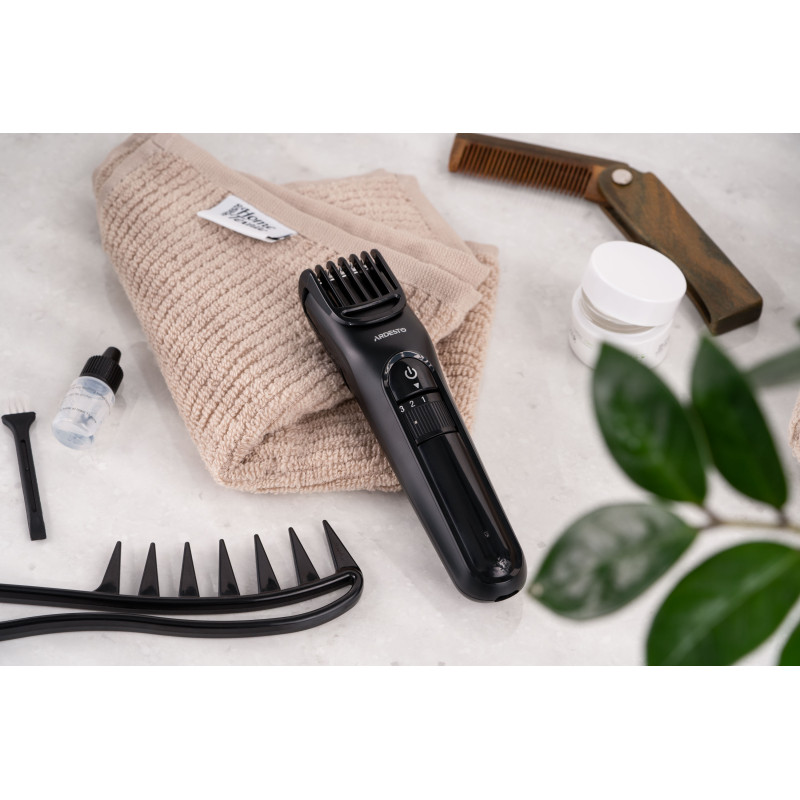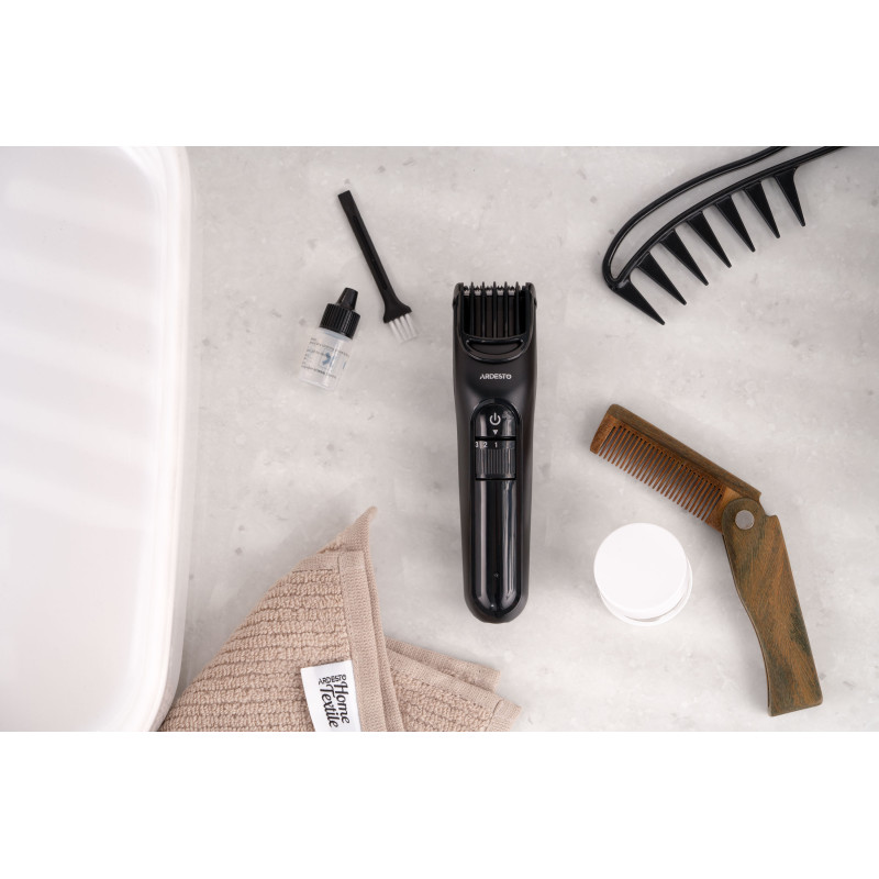 Компактна машинка для підстригання волосся ARDESTO HC-Y10-B виконана в чорному кольорі. Модель потужністю 5 Вт оснащена сталевим лезом 5Cr13 і лезом із нержавіючої сталі 3Cr13. Пристрій має вбудований акумулятор і можливість регулювання довжини підстригання без використання насадок (від 0,5 до 1,5 мм). До того ж у комплекті є одна насадка, що має 10 рівнів довжини зрізу – від 1 до 10 мм.