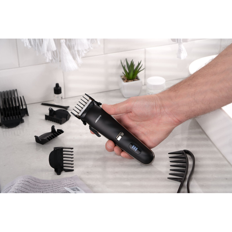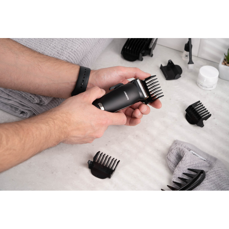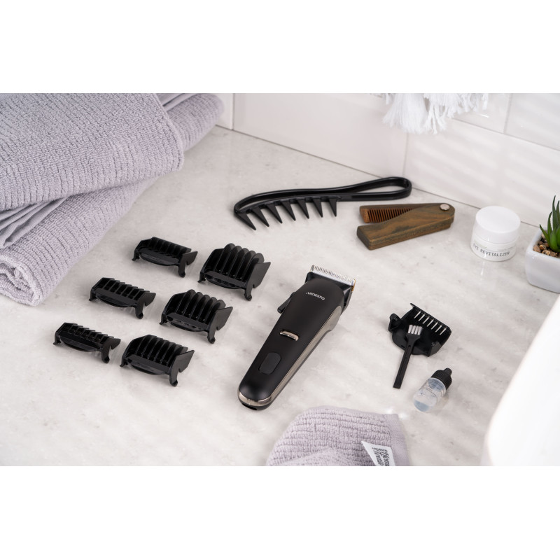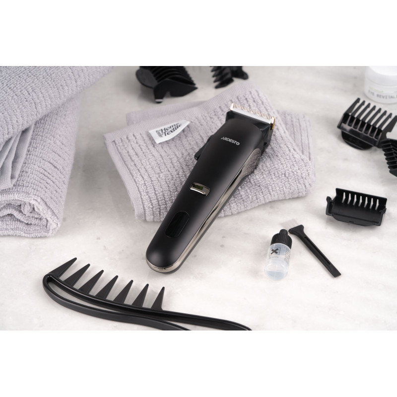 Компактна машинка для підстригання волосся ARDESTO HC-Y32-B виконана в чорному кольорі. Модель потужністю 4.5 Вт оснащена сталевим лезом і керамічним. Мінімальна довжина підстригання без використання насадок становить від 0,5 до 1 мм. До того ж у комплекті постачання є шість насадок, що забезпечують можливість вибору довжини від 4 до 30 мм.