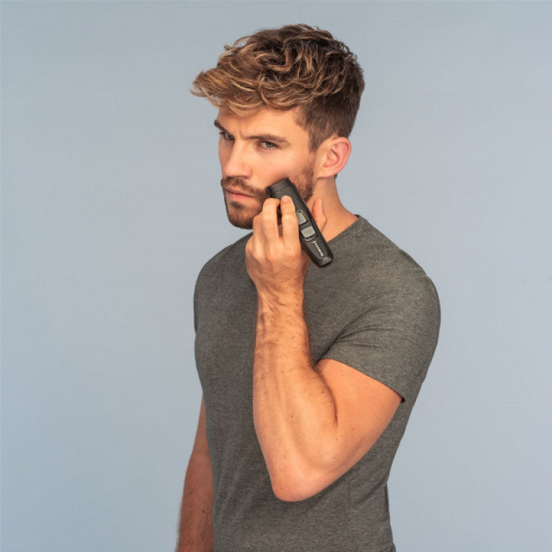Час "Включити Своє Я" з новим тримером Remington Style Series B3. Інтуїтивне коліщатко регулювання довжини стрижки дозволяє вибрати з 17 точних варіантів установки довжини з легкістю і точністю. Комфортні леза, що самі заточуються, розроблені для гладкого ковзання і точних результатів стрижки.