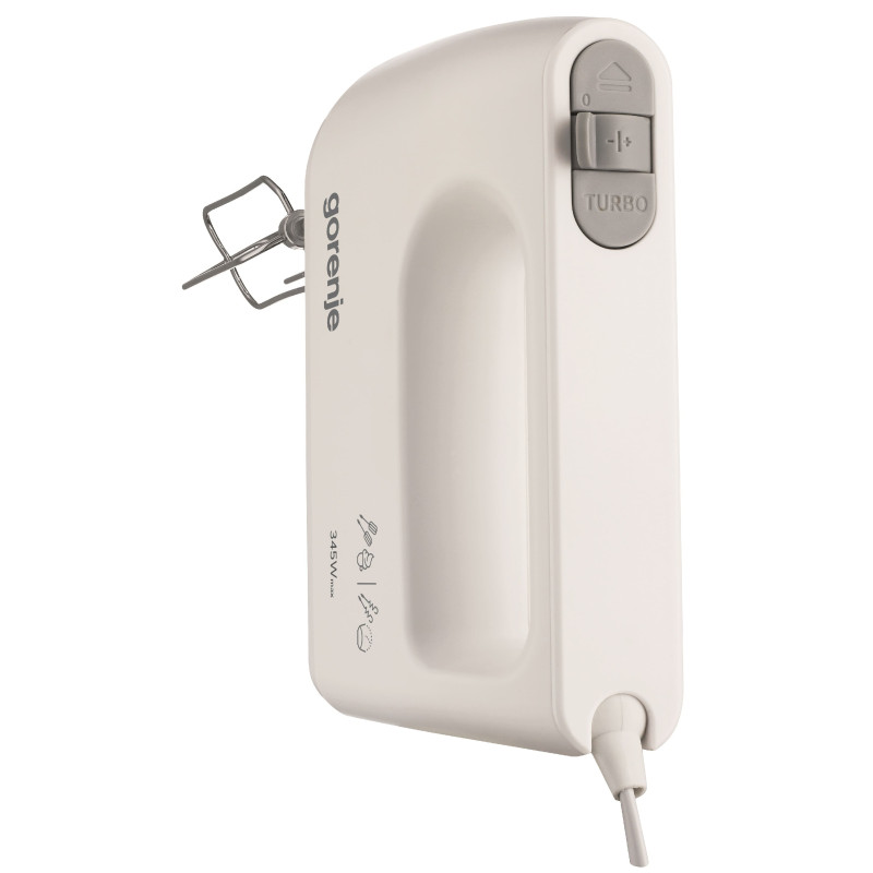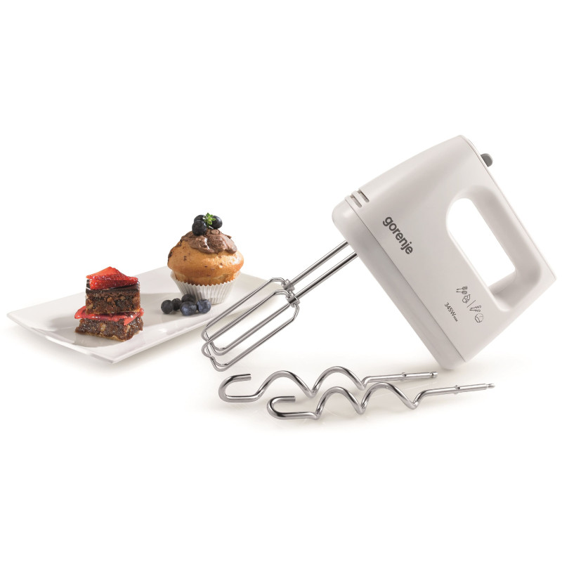 Ручний міксер Gorenje M360CW має 345 Вт потужності та 5 різних швидкостей. Цей міксер досить потужний, щоб отримати бажані результати. Комфортна ергономічна ручка дозволяє зручно утримувати міксер, а всі насадки можна легко мити в посудомийній машині.