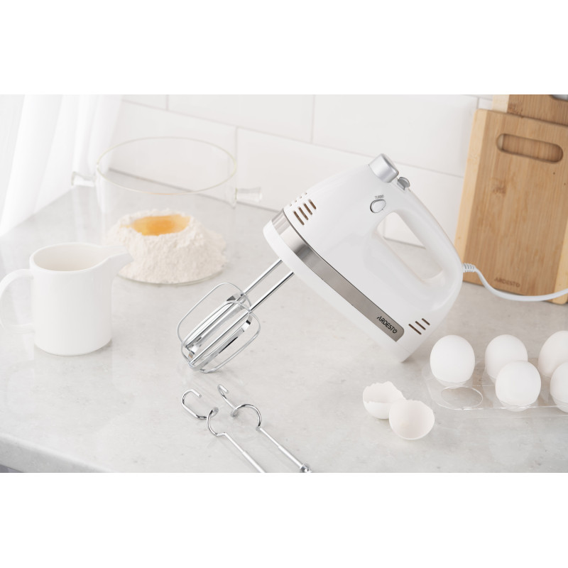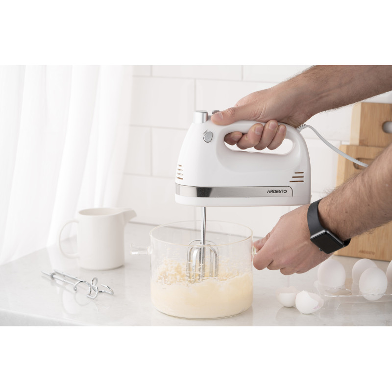 Ручний міксер ARDESTO HMC-3000W з двигуном з мідною обмоткою у корпусі білого кольору. Потужність пристрою становить 300 Вт. Міксер має компактний розмір, завдяки чому поміститься в кухонному ящику чи шафі.