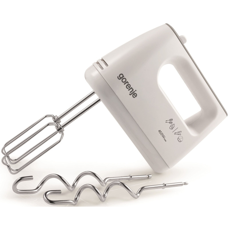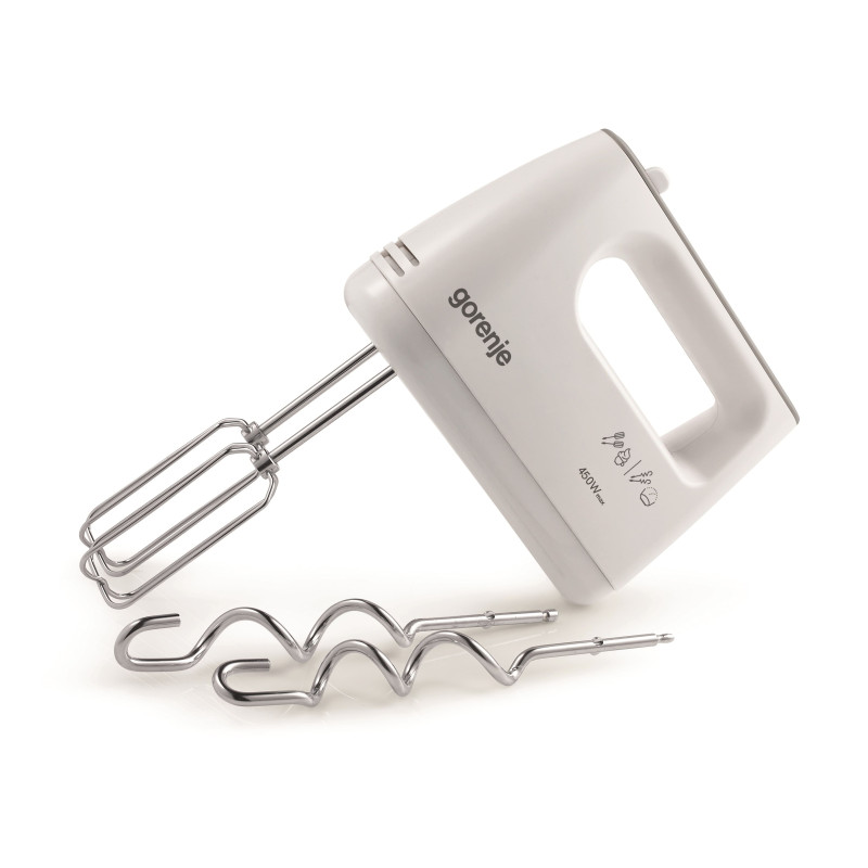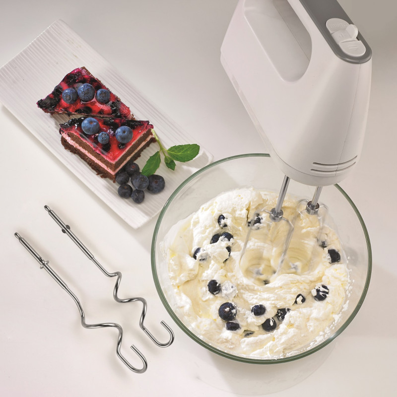 Ручний міксер з потужністю двигуна 450 Вт. Двигун працює на змінному струмі. Змінні деталі придатні для миття в посудомийній машині.