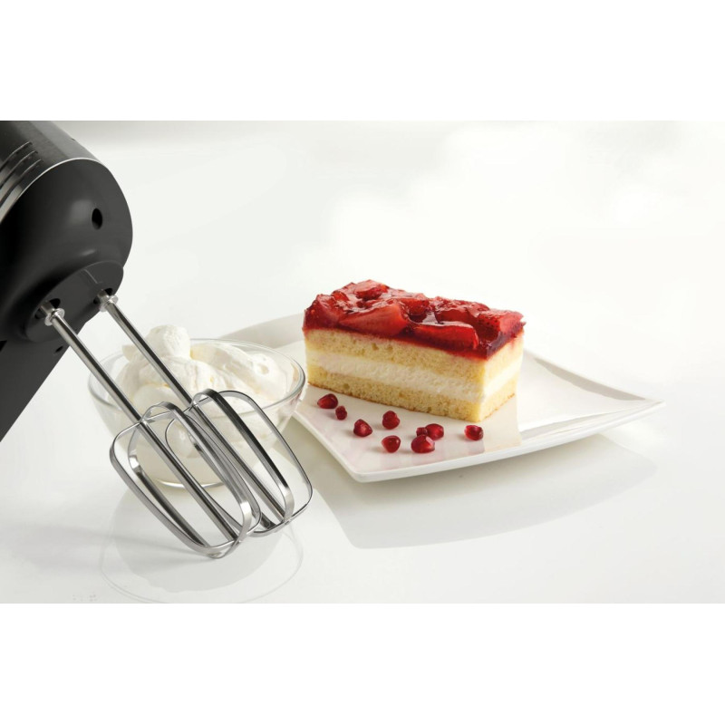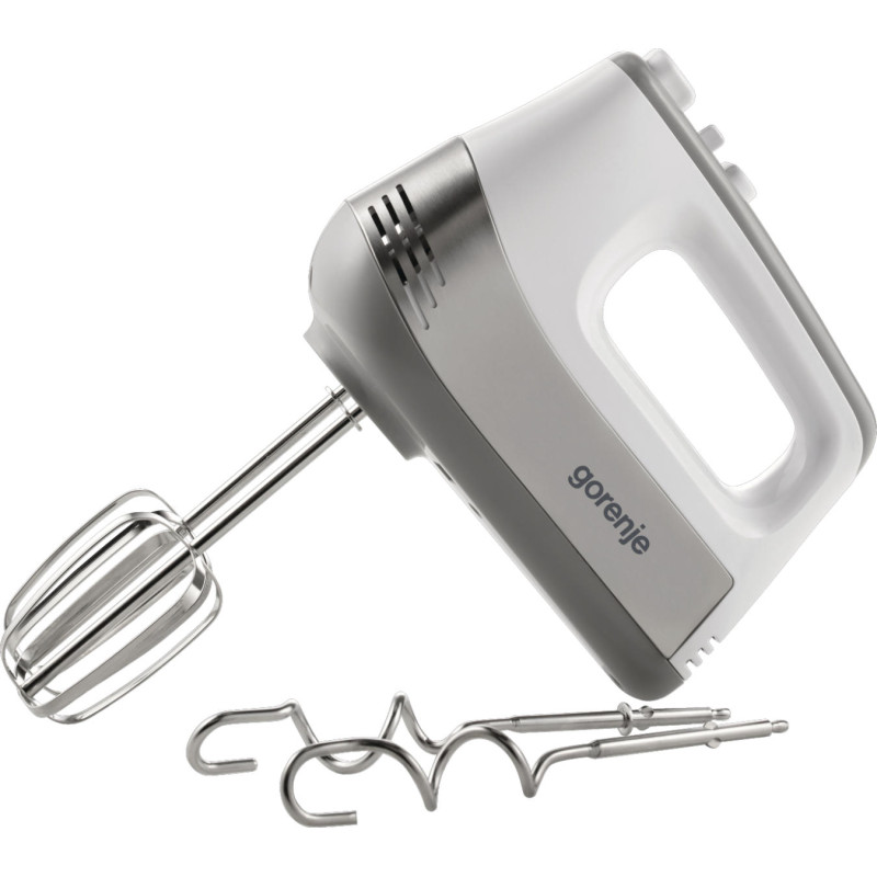 Ручний міксер Gorenje M500DC потужністю 500 Вт оснащений двигуном постійного струму, має 5 швидкостей, турборежим та імпульсну функцію. У комплекті – 4 насадки: вінчики для збивання та гачки для тіста. Знімні частини придатні для миття в посудомийці.