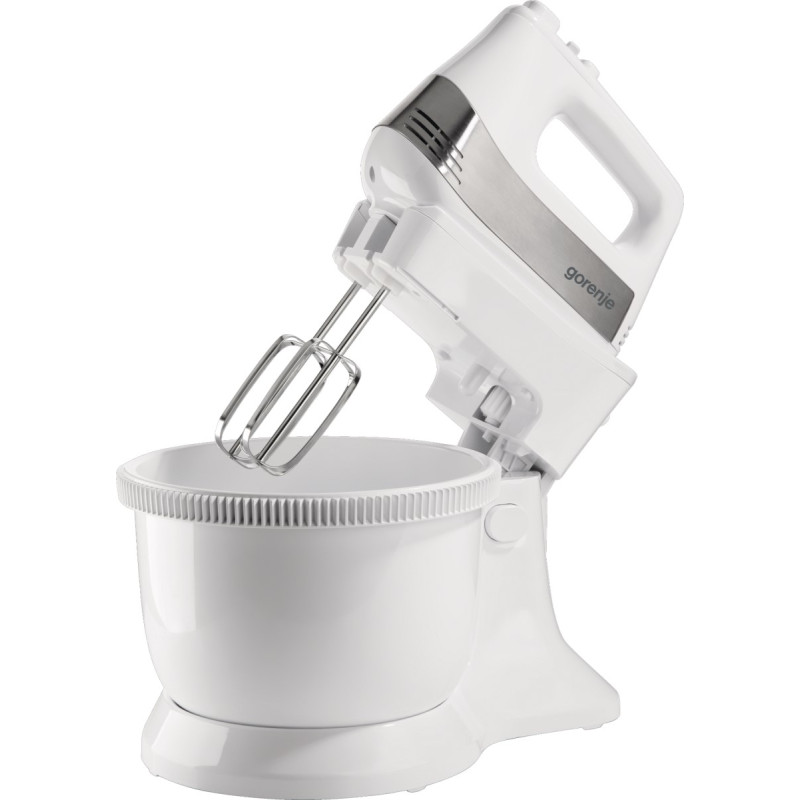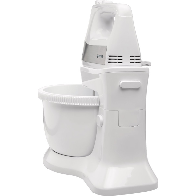 Міксер Gorenje M500DCS - це стаціонарна модель з пластиковою чашею об’ємом 3 літри для збивання і перемішування. Оснащений двигуном постійного струму для довговічності та економії енергії. На панелі управління є кнопки вибору швидкості та ввімкнення турбо режиму, а також кнопка вилучення насадок. В комплекті 4 насадки - для замішування тіста і для збивання. Міксер можна використовувати як в ручному режимі, так і закріпивши його на підставці.
