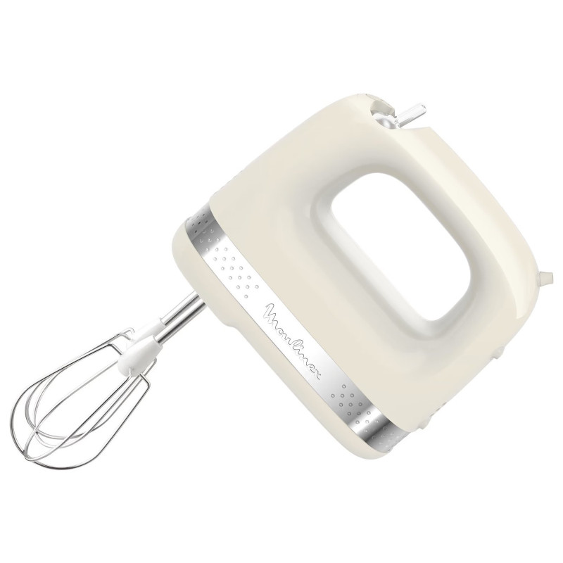 Ручний міксер Moulinex Soleil призначений для базових кулінарних задач у домашніх умовах. Потужність 200 Вт і дві швидкості дозволяють регулювати інтенсивність змішування залежно від консистенції продуктів. Компактний пластиковий корпус зручний у щоденному використанні та не займає багато місця під час зберігання. Комплектація передбачає пластикові та металеві вінчики для роботи з сумішами різної щільності. Кнопка вилучення насадок спрощує їх зняття після завершення роботи.
