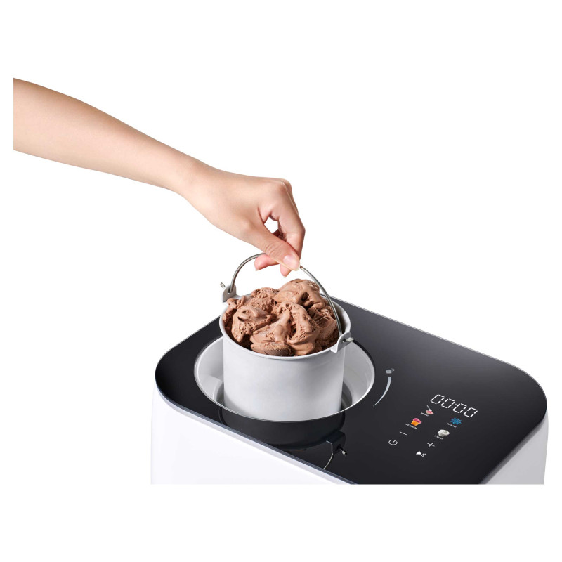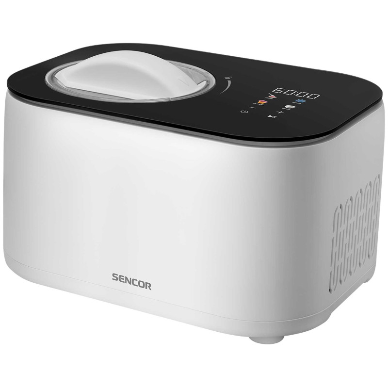 Морозивниця Sencor SIC3000WH з компресором (100 Вт, 1 л) не потребує попереднього заморожування. Готує морозиво, йогурт або заморожений десерт за 1 годину. Має 4 автоматичні програми, LED-дисплей, функцію охолодження на 60 хв і знімну чашу.