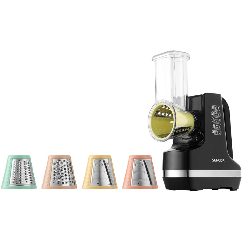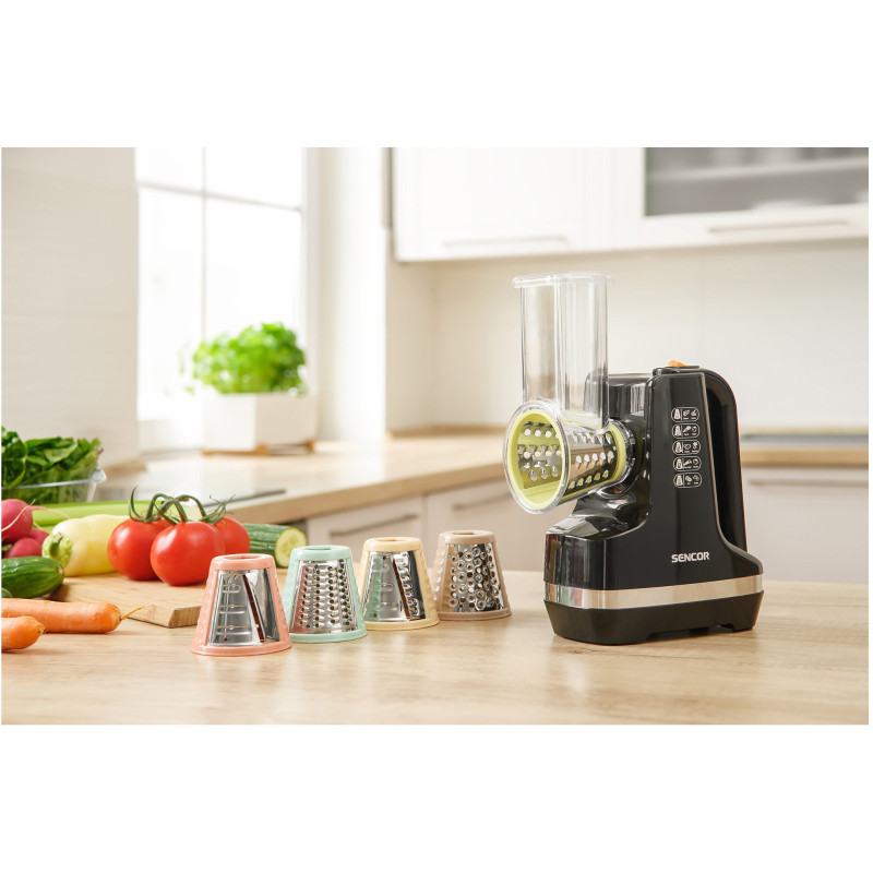 | Насадки | слайсер для тонких скибочок, терка для хвилястих скибочок, крупна терка, дрібна терка, сама дрібна терка |