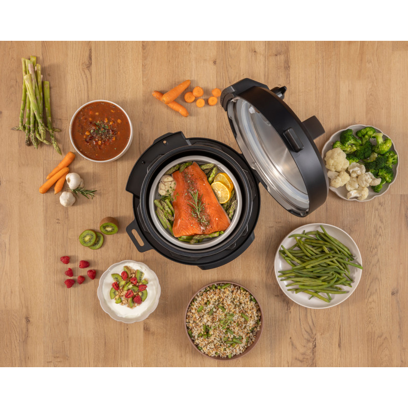 Мультиварка-скороварка Gorenje потужністю 1000 Вт поєднує функції мультиварки та скороварки для швидкого й зручного приготування страв. Пристрій має 8 програм, функцію відкладеного старту, налаштування часу та підтримання тепла. Завдяки знімній кришці та паровій корзині користування стає ще простішим. Сучасний дизайн із пластиково-металевим корпусом гармонійно впишеться на будь-якій кухні.