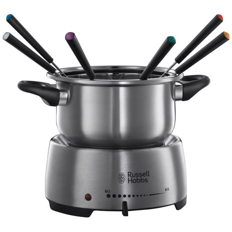 Електричне фондю Russell Hobbs Fiesta, ємність 2л, 1200Вт, 6 виделок в комплекті, нерж. сталь, сірий