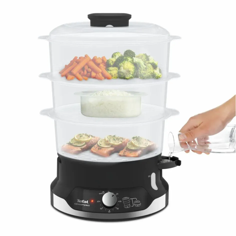 Пароварка Tefal Ultracompact VC204810 забезпечує смачні та корисні страви без зайвих труднощів, пропонуючи здорове приготування їжі в ультракомпактному форматі, що розроблений для максимального комфорту. Запатентована система штабельного зберігання економить місце в шафі та на робочій поверхні.