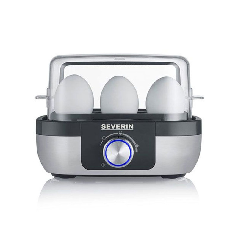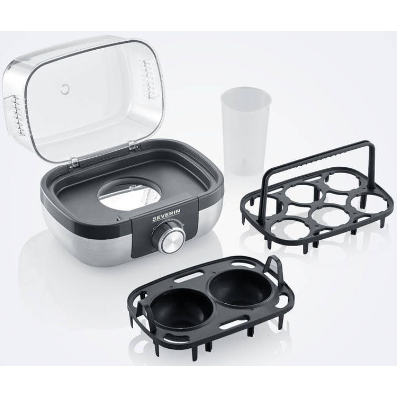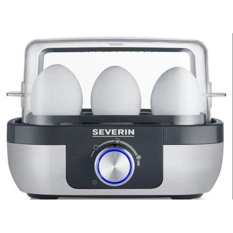 Яйцеварка Severin EK3169 (420 Вт) дозволяє одночасно зварити до 6 яєць із точним регулюванням ступеня готовності — від «некруто» до «круто». В комплекті є насадка для яєць-пашот, омлету та приготування овочів на пару. Звуковий сигнал, світлова індикація, захист від перегріву та 100% відсутність BPA роблять її безпечною та зручною у щоденному використуванні.