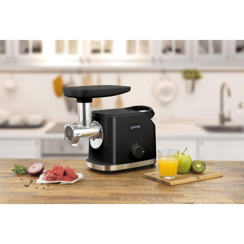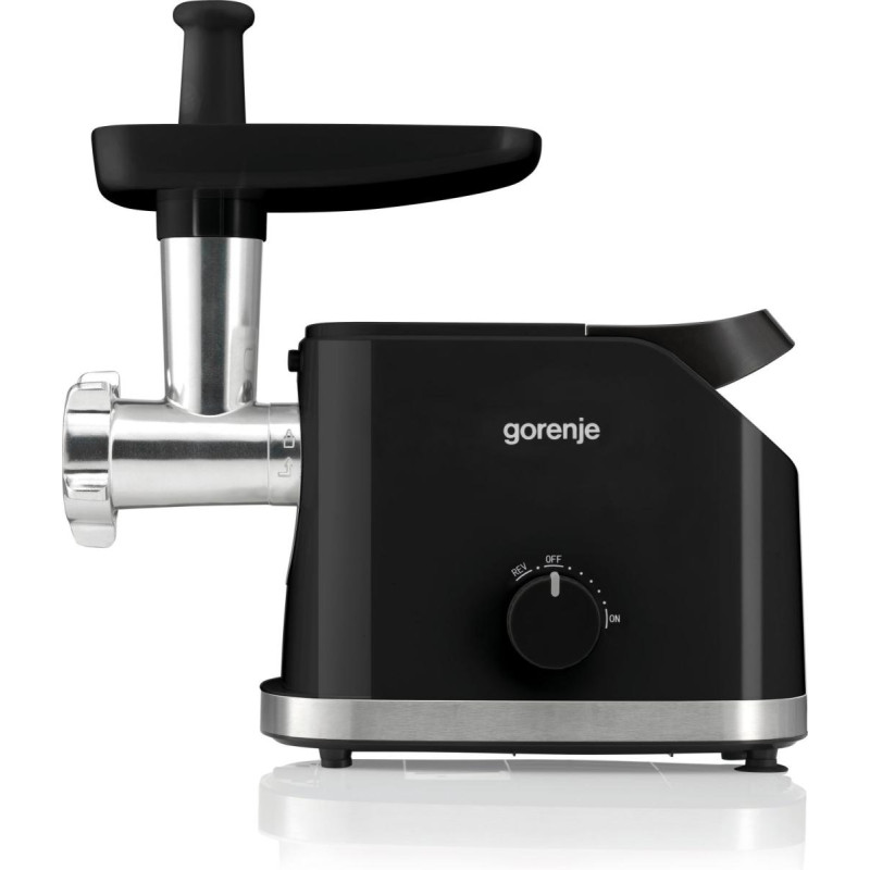 М’ясорубка Gorenje призначена для подрібнення м’яса та приготування фаршу різної структури. Двигун потужністю до 1800 Вт працює з металевим механізмом подрібнення та функцією реверсу для усунення блокування. У комплекті передбачено два металеві диски 3 мм і 8 мм та насадку для приготування ковбас. Конструкція доповнена системами безпеки, що включають захист від перегріву та миттєву зупинку двигуна.