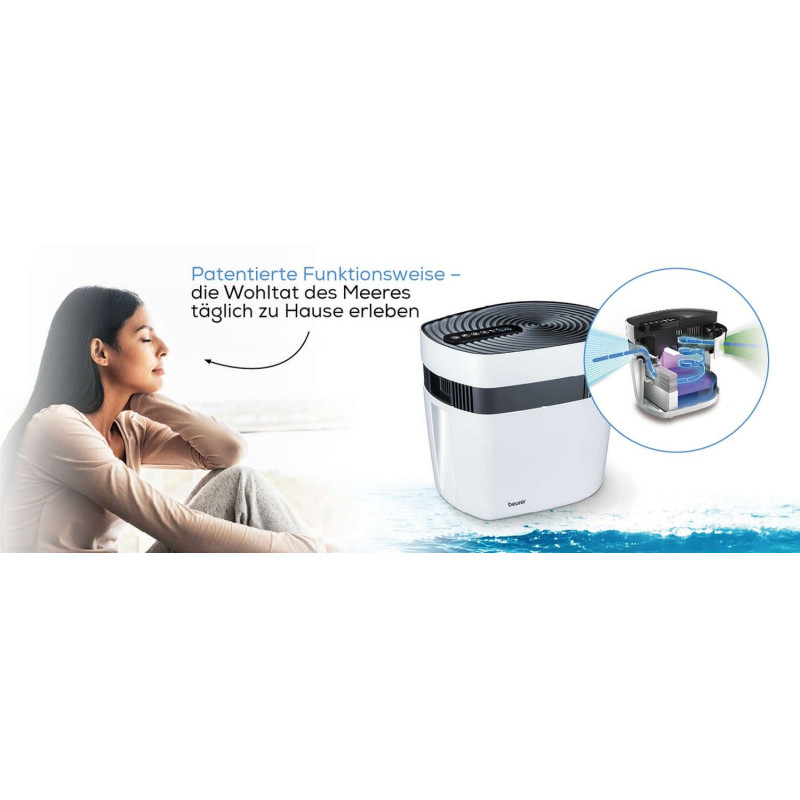 Інноваційний прилад для створення морського клімату та покращення якості повітря. Природне зволоження позитивно впливає на здоров'я дихальних шляхів, послаблює симптоми астми, покращує самопочуття та якість сну. Два фільтри видаляють із повітря пилок, пил, шерсть тварин та інші забруднення. Ультрафіолет вбиває бактерії, віруси та мікроорганізми. Повітря іонізується та насичується мінералами морської води. Ефективність приладу була підтверджена дослідженням Institut Prof. Dr. Kurscheid у співпраці з Prof. Dr. Sieber з університету Hochschule Bonn-Rhein Sieg.