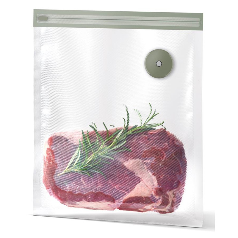 Не пропускають кисень і запобігають втраті вологи, повністю зберігаючи смак продуктів. Конструкція з подвійними ребрами забезпечує швидке видалення повітря з мінімальним тиском на продукти, не пропускає кисень і запобігає втраті вологи, зберігаючи свіжість продуктів. Нетоксичні й безпечні для продуктів матеріали. Найкращий захист ваших харчових продуктів. Зручне й легке чищення: просто розберіть вакуумний клапан і покладіть пакет у посудомийну машину. Багатофункціональні і є можливість повторного використання.