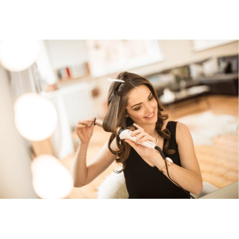 Щипці PROluxe виконані в поєднанні кольорів перламутрового білого і рожевого золота. Інтелектуальна технологія OPTIheat допомагає створити укладку з локонами, яка збережеться протягом усього дня, що можна порівняти з салонним якістю укладання.