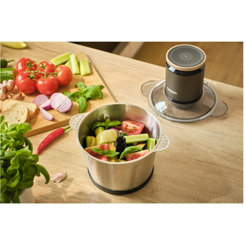 Sencor SCB8000BK — потужний чорний подрібнювач із 900 Вт, 9 титановими лезами та сталевим лотком 3 л! Регульована швидкість, протиковзкі ніжки та легке очищення роблять обробку продуктів швидкою та безпечною — незамінний помічник на кухні для щоденного використання!