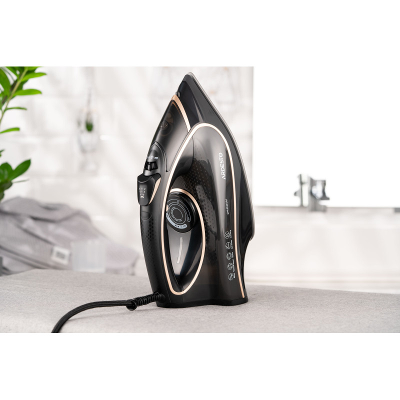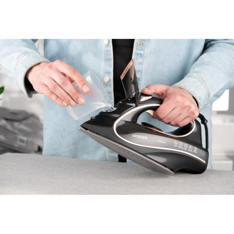 Із праскою ARDESTO IR-B2235 результат прасування буде завжди гарним на будь-яких видах тканин. Швидке нагрівання праски забезпечує ефективна потужність – 2 400 Вт. За регульованого режиму постійного подавання пари – 20-32 г/хв забезпечено прасування без зайвих зусиль. Для глибшого проникнення пари у волокна і швидкого видалення різноманітних складок на щільних тканинах є паровий удар – 0,5-0,8 г.