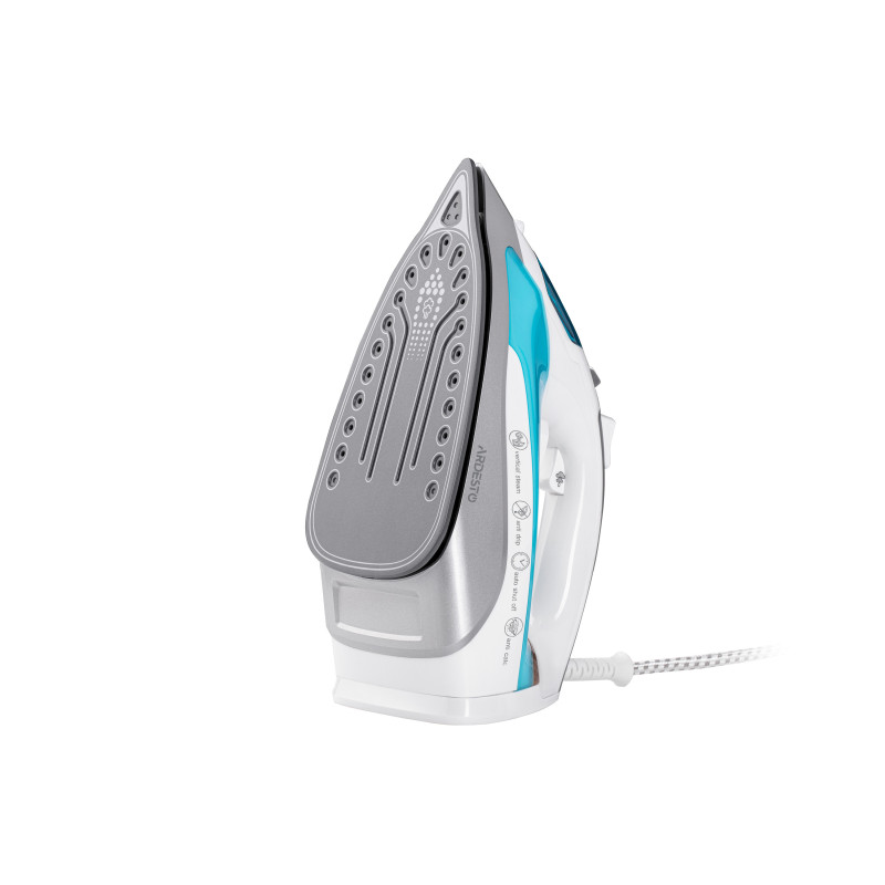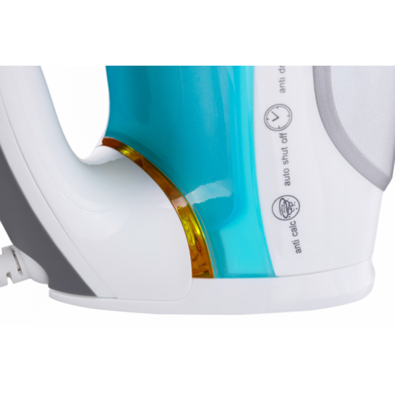 Праска у блакитному кольорі з потужністю 2200 Вт, керамічним покриттям підошви, резервуаром на 280 мл, функцією пари, а також захистом від накипу та системою "крапля-стоп".