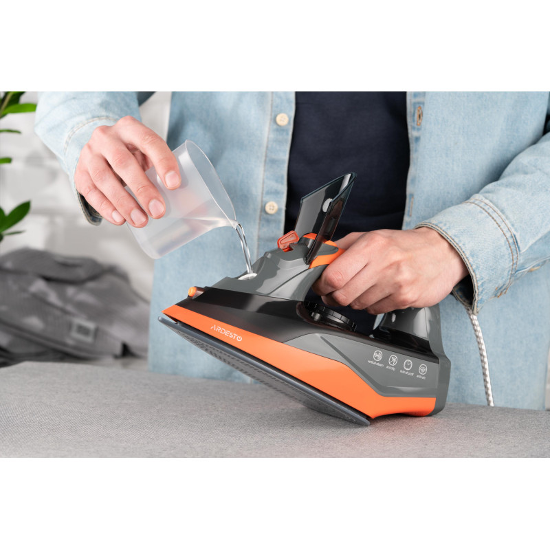 З праскою ARDESTO IR-C2233-GR результат прасування буде завжди гарним на будь-яких видах тканин. Швидке нагрівання праски забезпечує ефективна потужність – 2 200 Вт. За регульованого режиму постійного подавання пари – 20-32 г/хв забезпечено прасування без зайвих зусиль. Для глибшого проникнення пари у волокна і швидкого видалення різноманітних складок на щільних тканинах є паровий удар – 0,5-0,8 г.