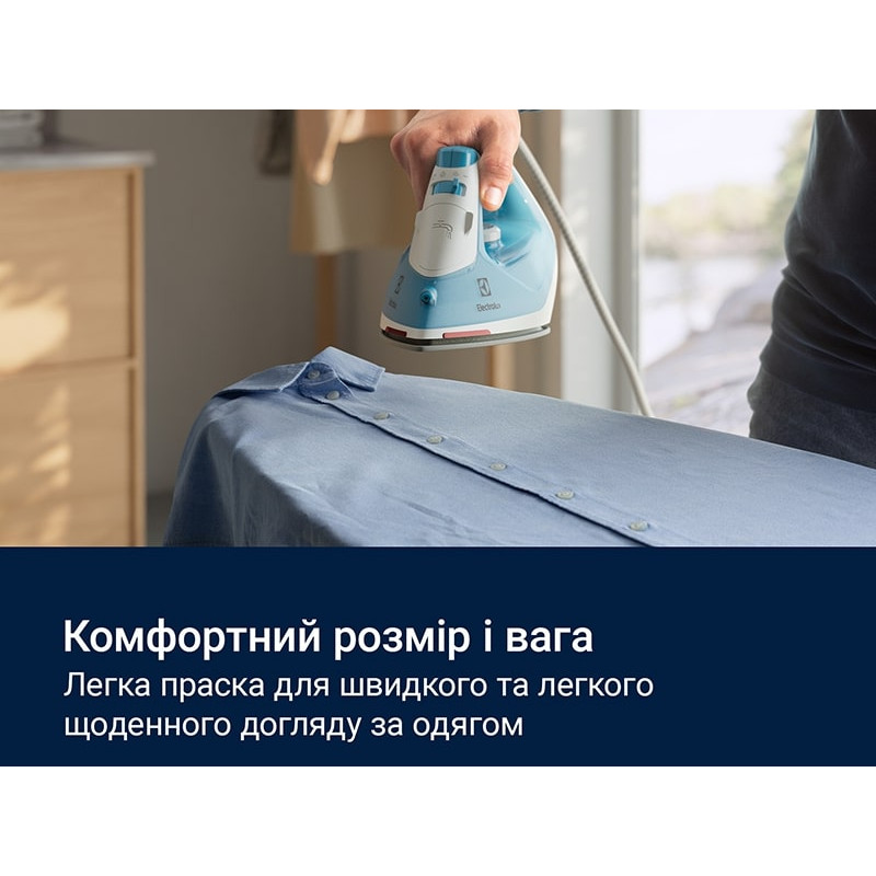 Праска Electrolux, 2300Вт, 250мл, паровий удар 110гр, керам. підошва, синьо-білий