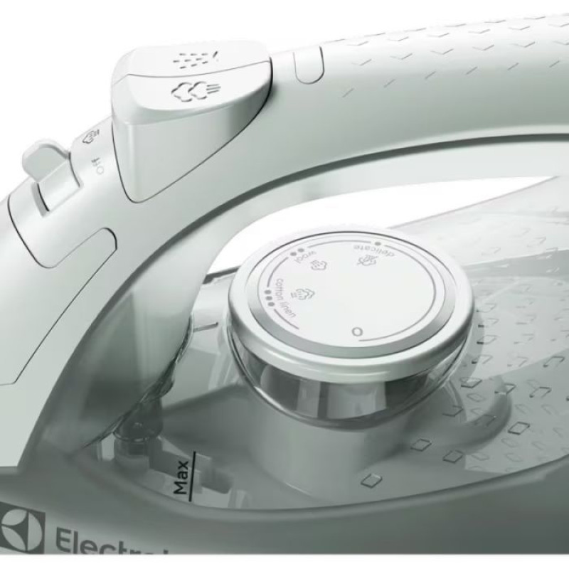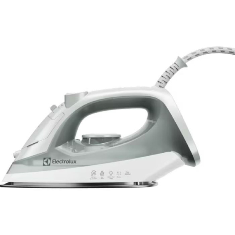Компактна парова праска Electrolux E3SI1-2LG серії 300 потужністю 2000 Вт із керамічною антипригарною підошвою та 23 отворами для пари впорається з будь-якими складками — від щоденних сорочок до вертикального розгладження штор і піджаків. Резервуар для води об'ємом 200 мл із прозорим корпусом і кришкою зручно контролювати під час роботи. Функція парового удару до 80 г/хв пробиває стійкі складки за один прохід, а розпилювач зволожує тканину перед прасуванням. Вага 0,8 кг і шнур 1,9 м із поворотом на 360° роблять прилад зручним для тривалого використання.