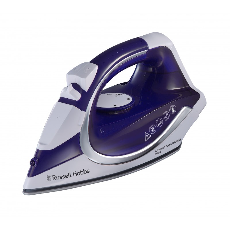 Праска Russell Hobbs безпровідна Supreme Steam Cordless, 2400Вт, 300мл, паровий удар -40гр, постійна пара - 135гр, база для заряджання, автовимкнення, керам. підошва, біло-синій
