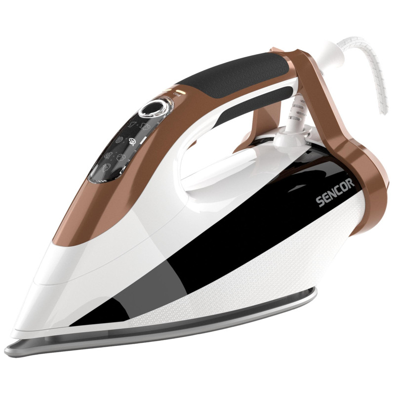 Праска Sencor SSI8400BZ — ефективне рішення для щоденного прасування. Потужність 2800 Вт, керамічна підошва, паровий удар 195 г/хв і постійна подача пари 55 г/хв. Оснащена сенсорним дисплеєм з режимами PRO та AUTO, вертикальною парою, системою самоочищення та функцією Drip-Stop.