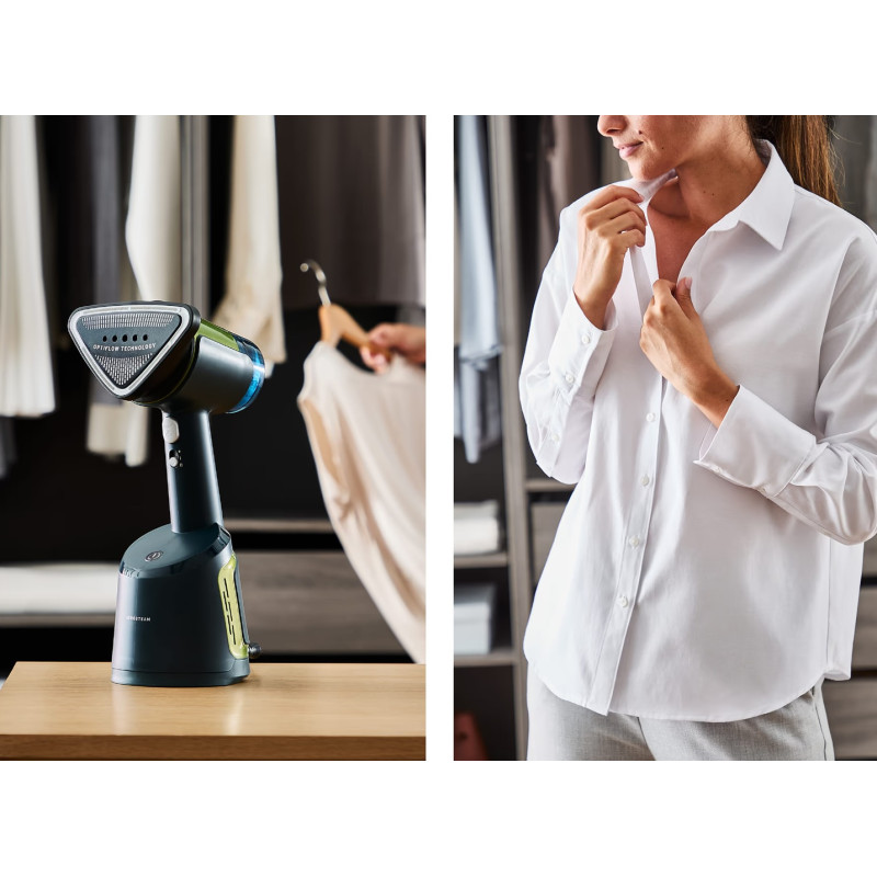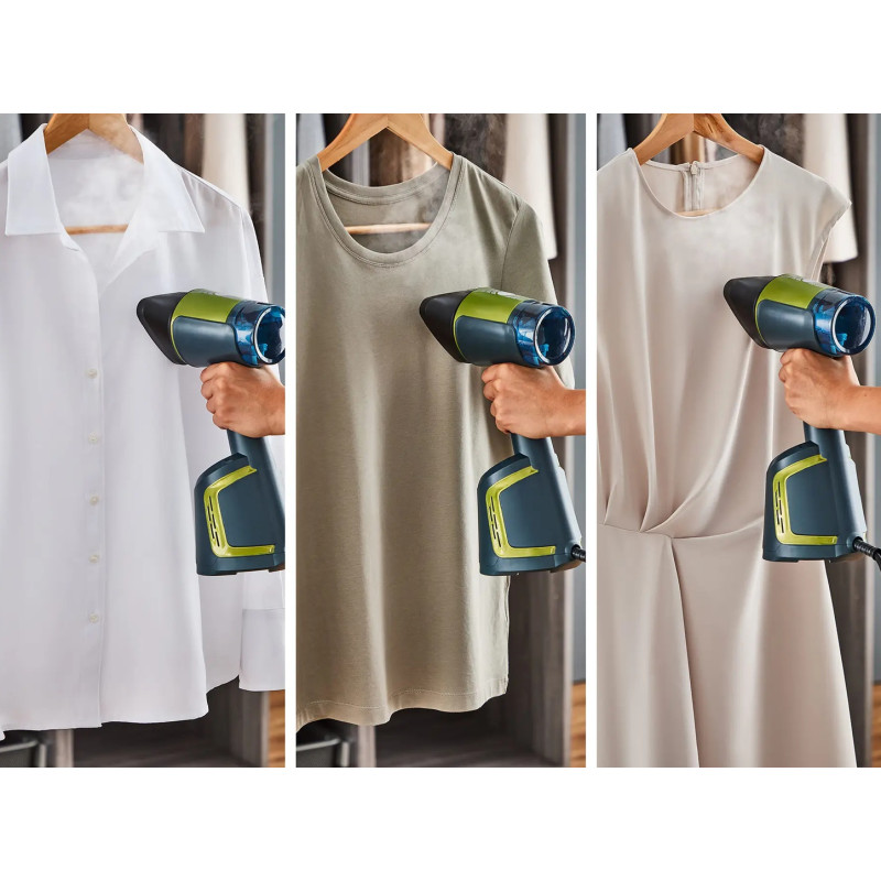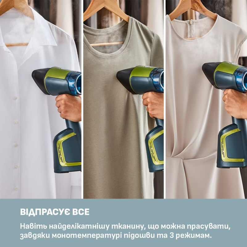 | Особливості | Час нагрівання: 30 секунд; Автовимикання, 3 режими роботи: турборежим (максимальне всмоктування для швидкого та глибокого розгладження складок), м'який режим всмоктування (ідеальний для синтетичних тканин), режим лише пари (для найделікатніших речей); Тех |