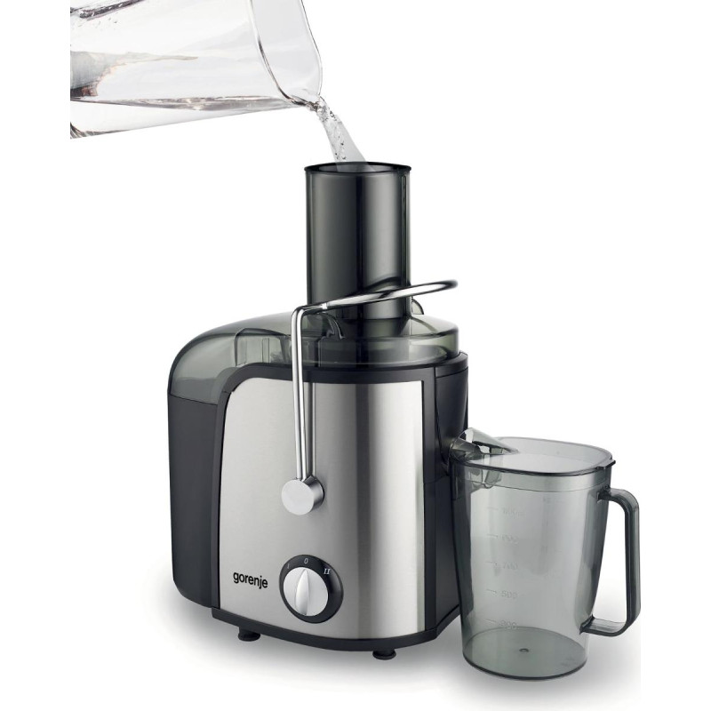 Соковитискач Gorenje JC805EII — це надійний пристрій для отримання свіжого соку з фруктів та овочів. Вона оснащена потужним двигуном потужністю 800 Вт, який працює в двох режимах швидкості. Фрукти та овочі, які проходять через жолоб діаметром 70 мм, можуть не розрізатися на частини. Отриманий сік фільтрується через міцну сітку з нержавіючої сталі та надходить у градуйовану ємність. Залишок м’якоті автоматично збирається в контейнері об’ємом 1,5 літра. Модель керується ергономічним трьохпозиційним перемикачем і захищена від неправильної збірки. Крім того, пристрій автоматично вимикається під час перегріву. Соковижималка Gorenje JC805EII стійка на будь-якій робочій поверхні завдяки вакуумним ніжкам.