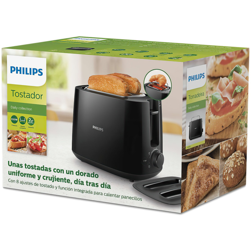 Цей компактний тостер має 8 налаштувань і 2 великі отвори зі змінною шириною, тому Ви зможете рівномірно підсмажувати різні типи хліба. Вбудована рамка для підігрівання булочок дозволяє також легко підігрівати улюблені булочки, тістечка та рогалики.