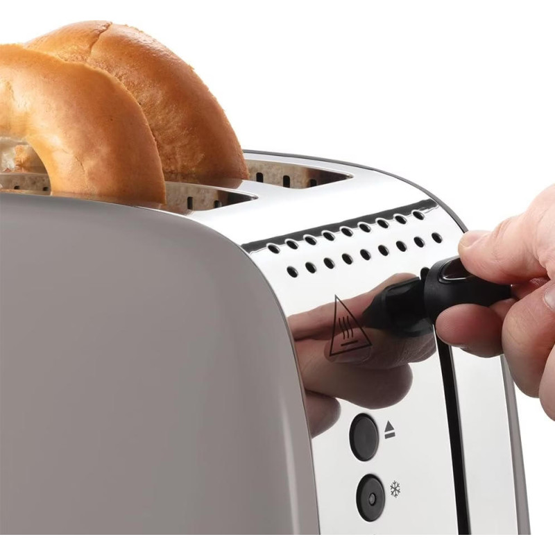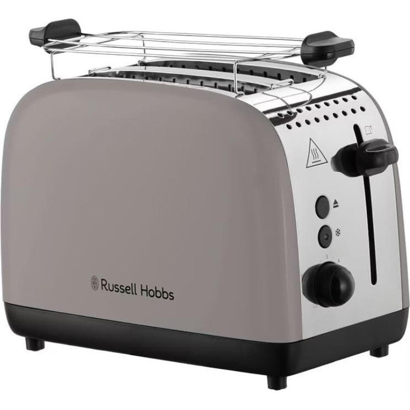 Тостер Russell Hobbs 26931-56 у кольорі мокка поєднує класичний вигляд і сучасні функції. Завдяки потужності 1670 Вт і шести рівням обсмаження тости виходять рівномірно золотистими. Модель має функції розморожування, підігрівання й “Підйми та подивися” для контролю процесу без зупинки. У комплекті передбачено решітку для підігрівання булочок і круасанів.