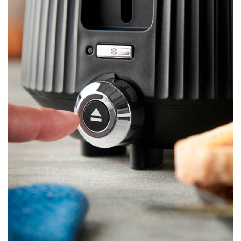 Тостер оснащений двома широкими слотами, що дозволяють зручно підсмажувати різноманітні види хліба – від тонких скибочок до товстіших. Ви можете легко регулювати ступінь підсмажування за допомогою інтуїтивного регулятора, що дозволяє отримати ідеальний рівень золотистої скоринки відповідно до ваших смаків.