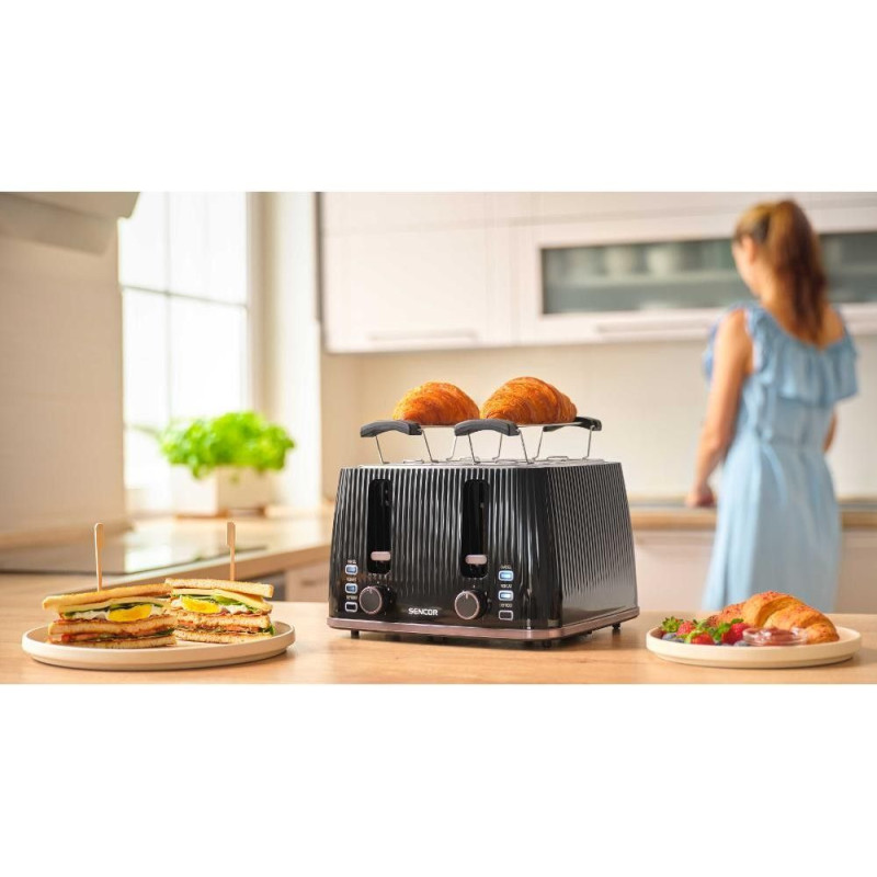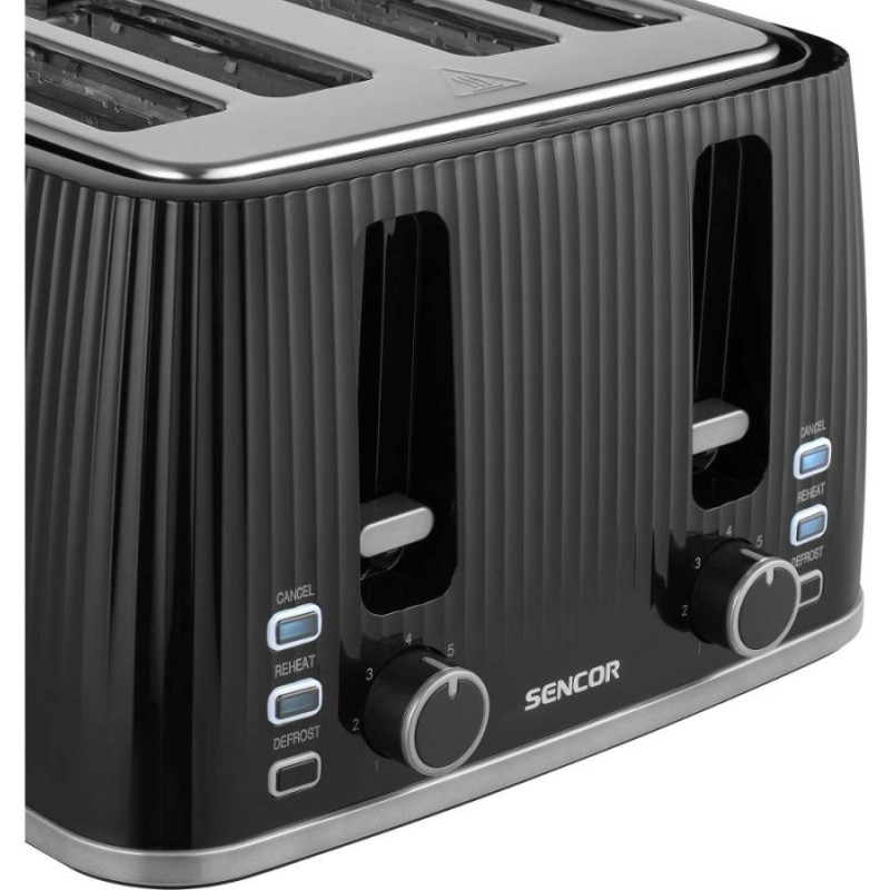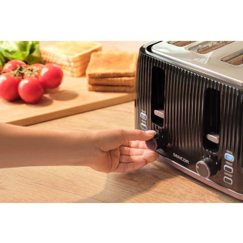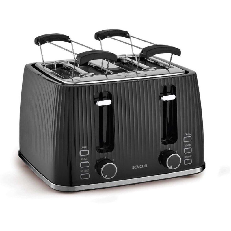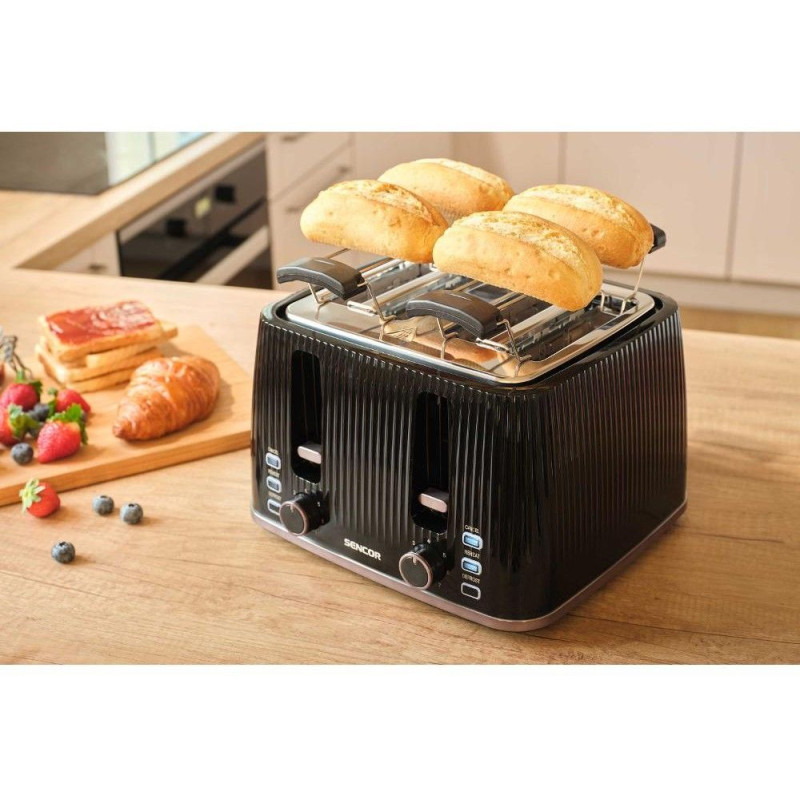 Sencor STS7541BK — потужний 4-слотовий тостер (1860 Вт) з 7 рівнями підсмажування, функціями розморожування, підігріву та миттєвої зупинки. Знімна решітка для булочок, великий піддон для крихт і стильний чорний корпус. Ідеальний для великої сім’ї або офісу — одночасно готує 4 тости.