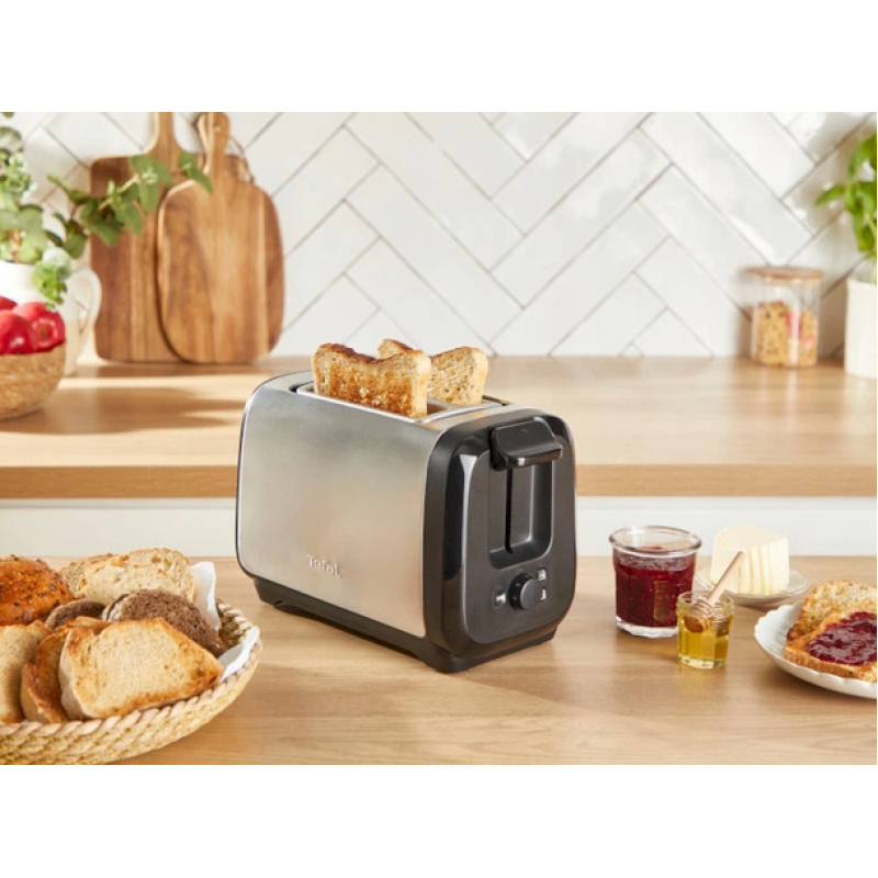 Цінуйте кожну хвилину разом із тостером Tefal Subito TT5S1DE0. Стильний тостер на 2 слоти готує тости до 2 разів швидше та споживає до 23% менше енергії (порівняно з моделлю Subito LT340 на рівні 4). Ідеальний вибір для насичених ранків: 7 рівнів підсмажування на будь-який смак, зручний підйомний важіль для безпечного діставання, функції зупинки, розморожування та підігріву, а також знімний піддон для крихт для легкого очищення.