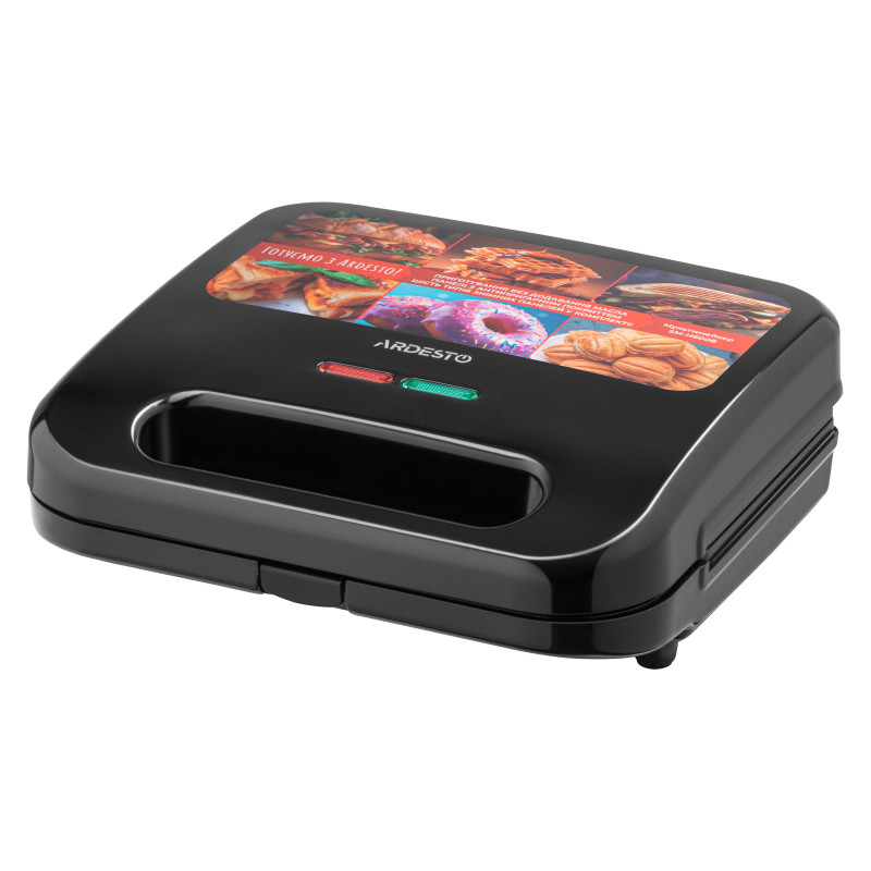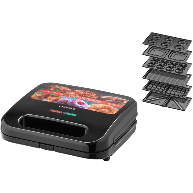 Мультимейкер ARDESTO SM-H600B є універсальним кухонним пристроєм, із яким можна приготувати багато різноманітних страв за допомогою змінних пластин. Перелік страв, які можна приготувати завдяки знімним пластинам, вражає: сендвічі квадратної форми, паніні, овочі гриль, гриби, вафлі товстого типу (традиційні віденські, брюссельські тощо), печиво «Горішки», панкейки, оладки та пончики. Пластини розміром 23 × 13 см мають протипригарне покриття. Готувати можна, дотримуючись принципів здорового харчування – без додавання масла, та зберігаючи корисні властивості продуктів.