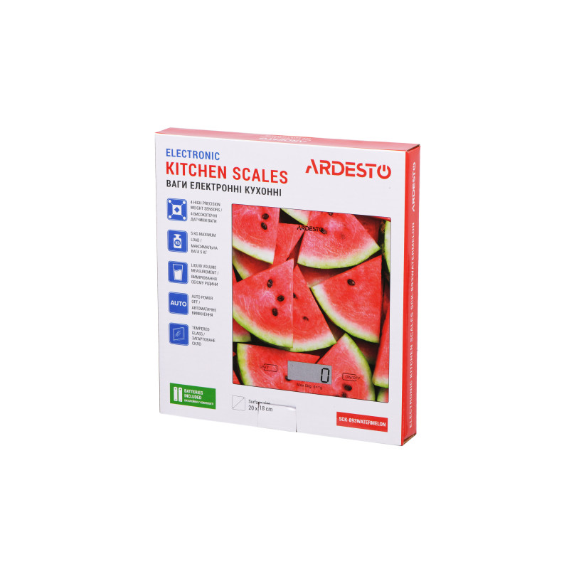 Ваги ARDESTO кухонні Wаtermelon, 5кг, AAAx2 в комплекті, скло, багатокольоровий